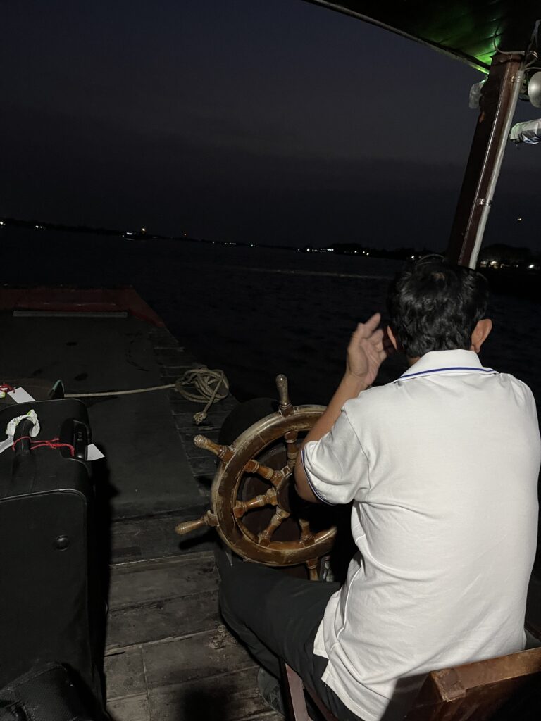 Grundet mørket, og en tæt vækst af vandhyacinter, havde kaptajnen svært at finde indsejlingen til vores resort.