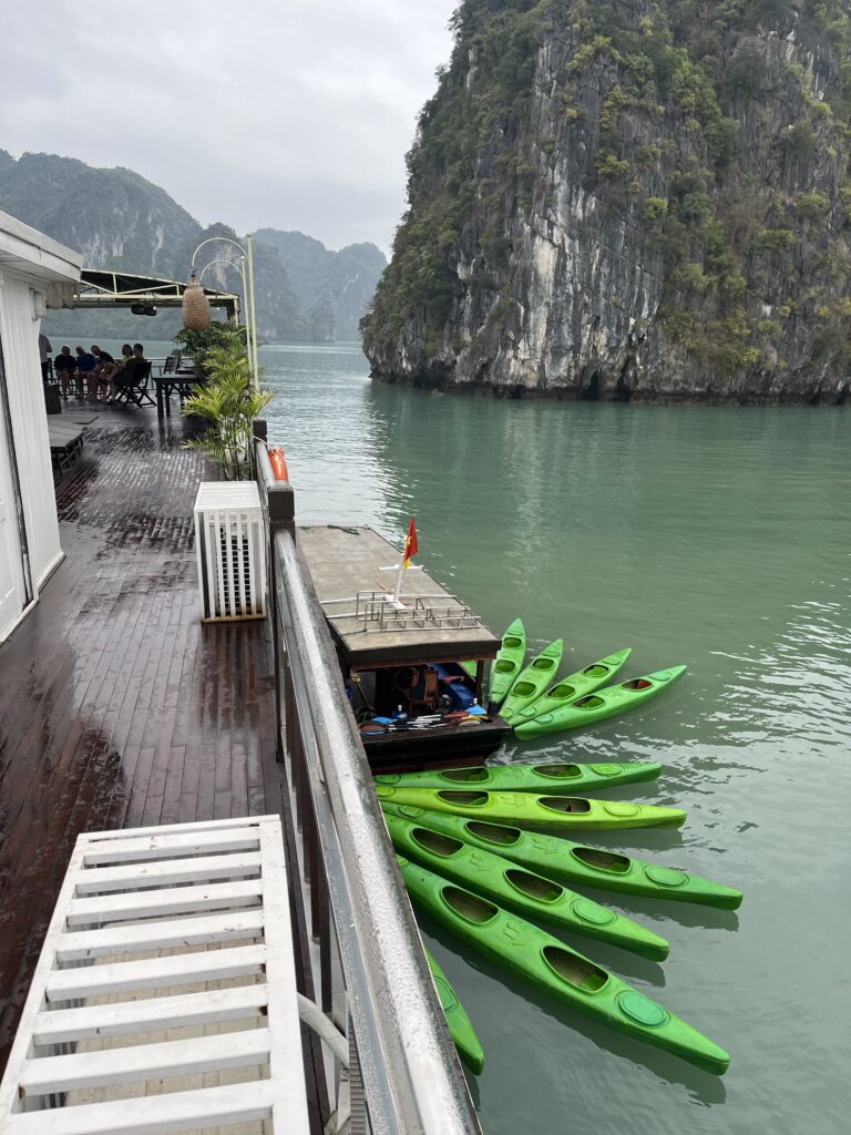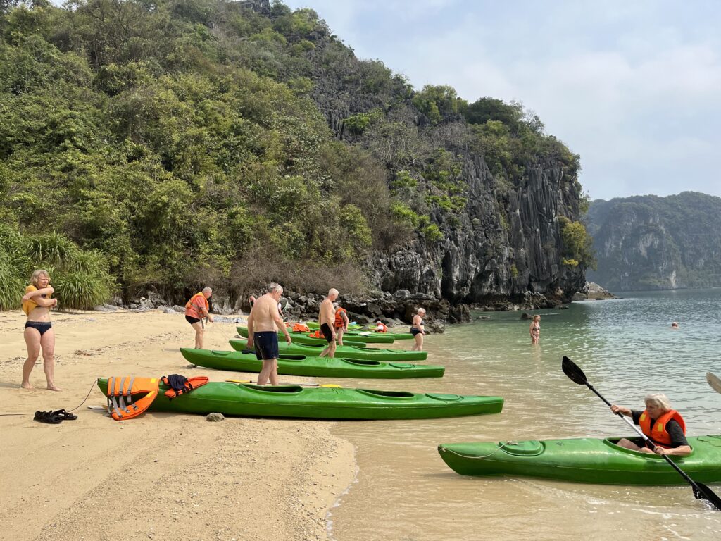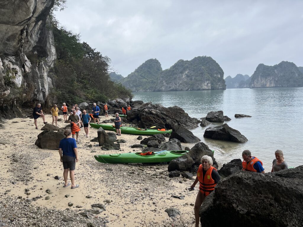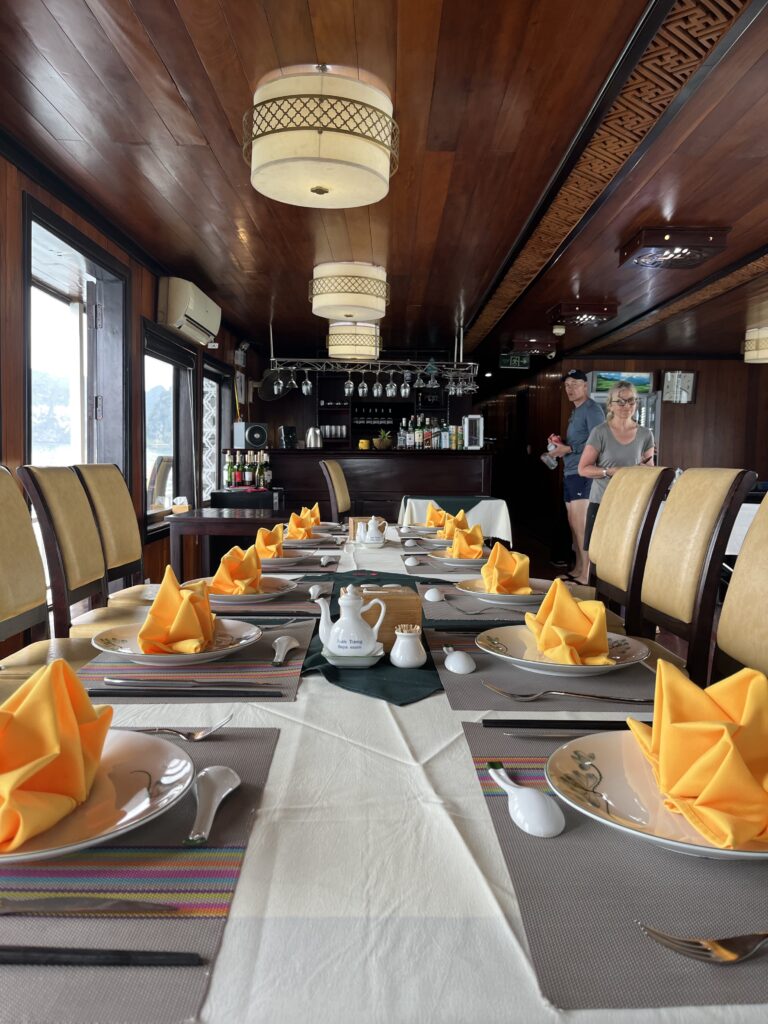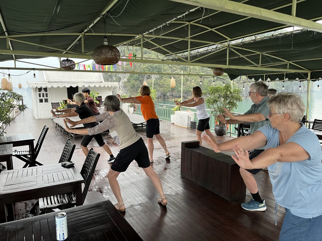 Maja ville gerne købe en taske, og da vi uden for Lodgen bevæger os hen mod et “salgssted” (en træ-halvtag), kommer den første med en kollektion af varer. Vi bliver tilbudt en skamle, at sidde på, og pludselig vælter det ind med Red Dao kinder, der hver har deres varer med. “You buy from me”, lyder det på kryds og tværs. Jeg tror der var mindst 10 kvinder. Maja fik tilbudt tasker, pudebetræk, sjaler, punge, armbånd og dyr. Jeg selv skulle ikke købe noget, men på mystisk vis, og jeg ved ikke hvordan det gik til, fik jeg købt en vandbøffel. Vores guide, Peter, kom og redede os ud fra halvtaget, men kvinderne fulgte med, helt hen til Lodgen, hvor en vagt fik spæret kvindernes adgang.