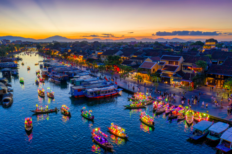 Om aftenen ligner byen et tivoli, hvor gaderne er oplyst med lanterner, og på Hoai-floden kan man opleve en flot sejltur hvor også bådene er udsmykket med lys.