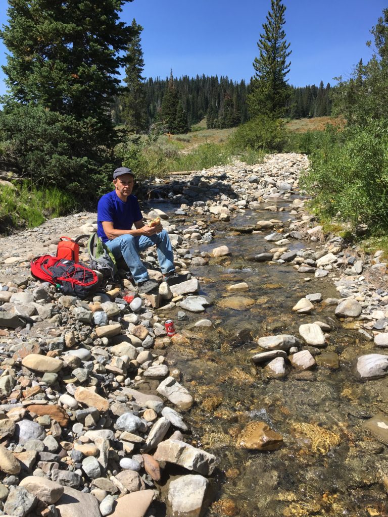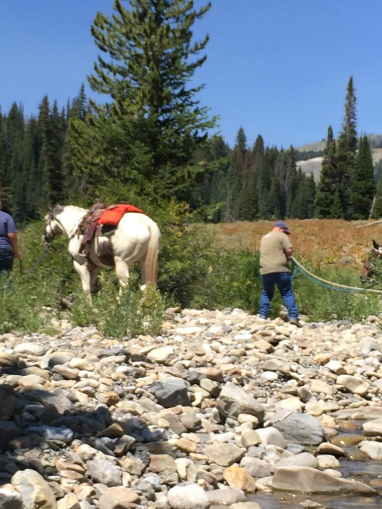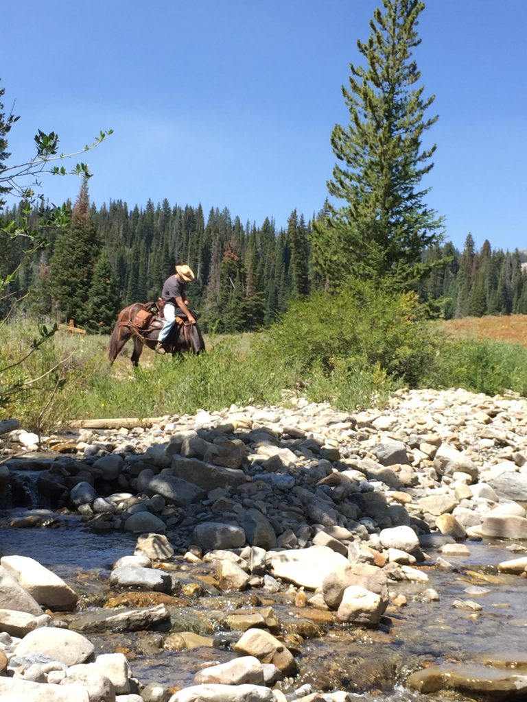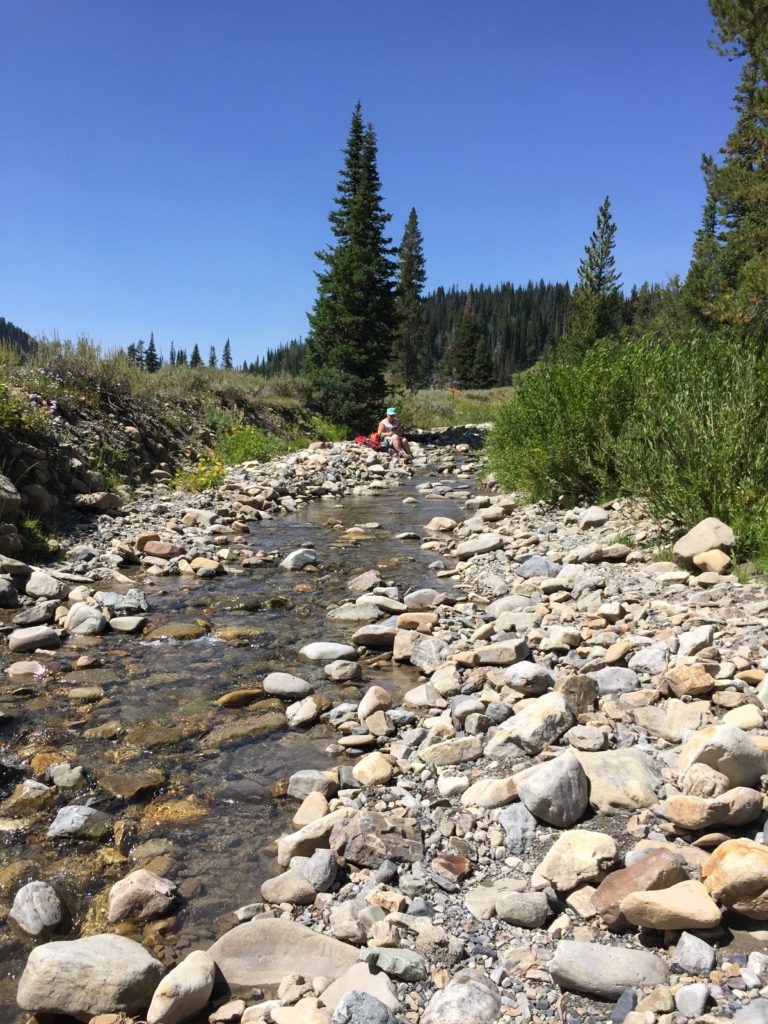 I stedet foreslog damen, vi talte med, at køre ud et sted hun havde gået for nogle dage siden, et ret flot landskab, syntes hun selv, langs et lille å-løb ca. 60 km fra Pinedale. Vi skulle blot følge vejen, indtil vi ikke kunne komme videre. Vi fulgte rådet, og måtte de sidste 14 km køre af en bumpet grusvej.