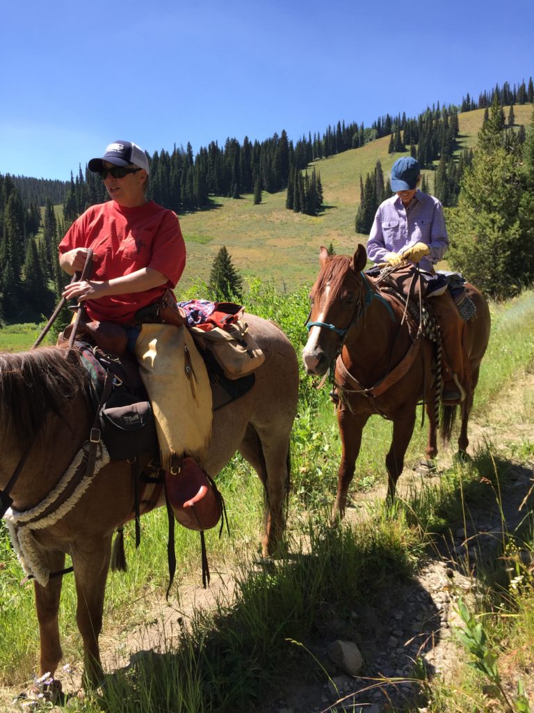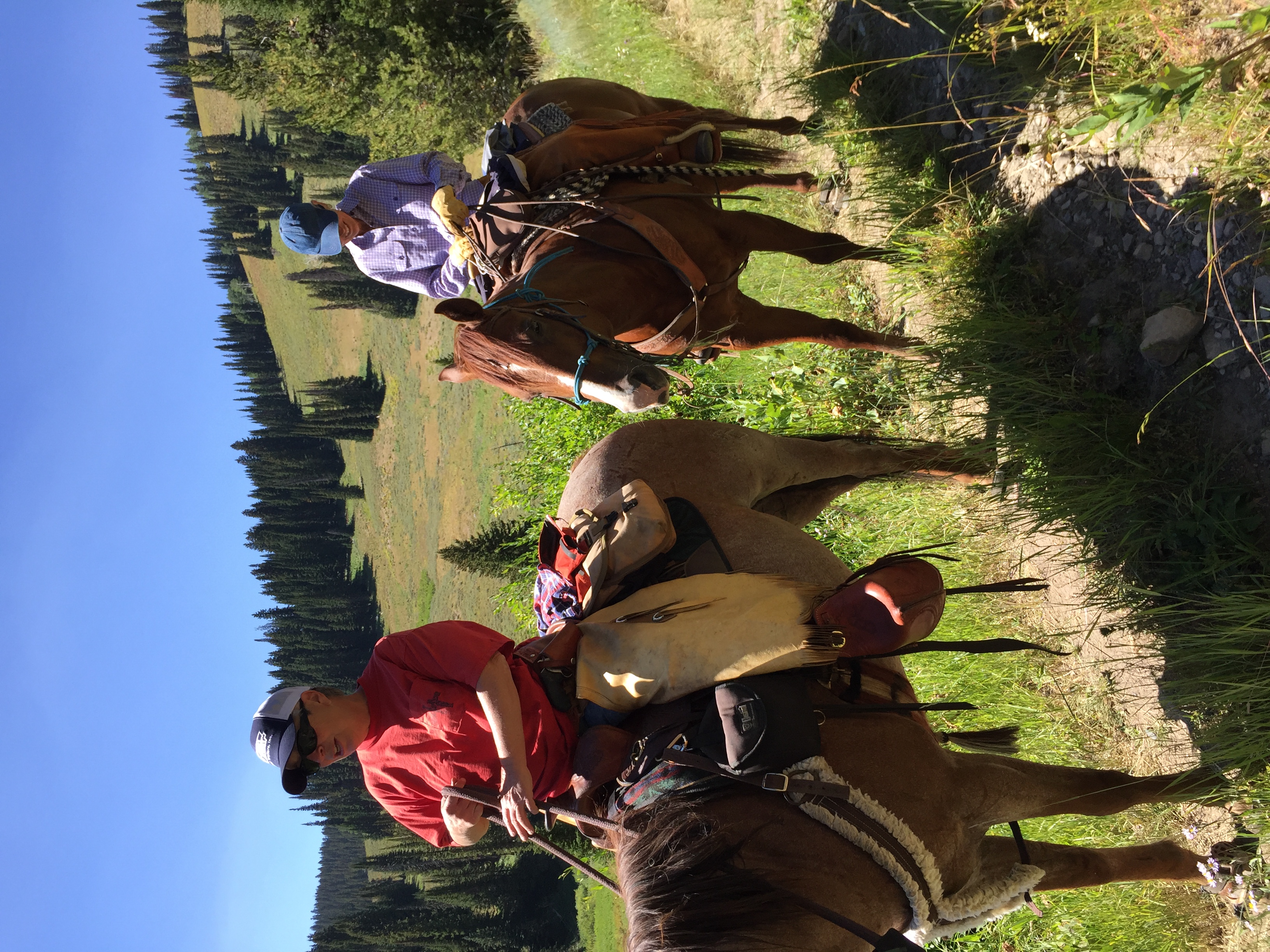 Maja var lidt bekymret for at møde en bjørn, når vi ikke sad i bilen. På turen mødte vi et par damer på hesteryg, jeg forhørte mig om de havde mødt bjørne. Det havde de ikke, men havde også sikret sig, i det tilfælde de skulle møde en. De havde udstyret i orden, en “bearspray”, samt en revolver i bæltet, som de viste hvor sad. Man skal altid være beredt, i det tilfælde man løber ind i problemer, fortalte de os.